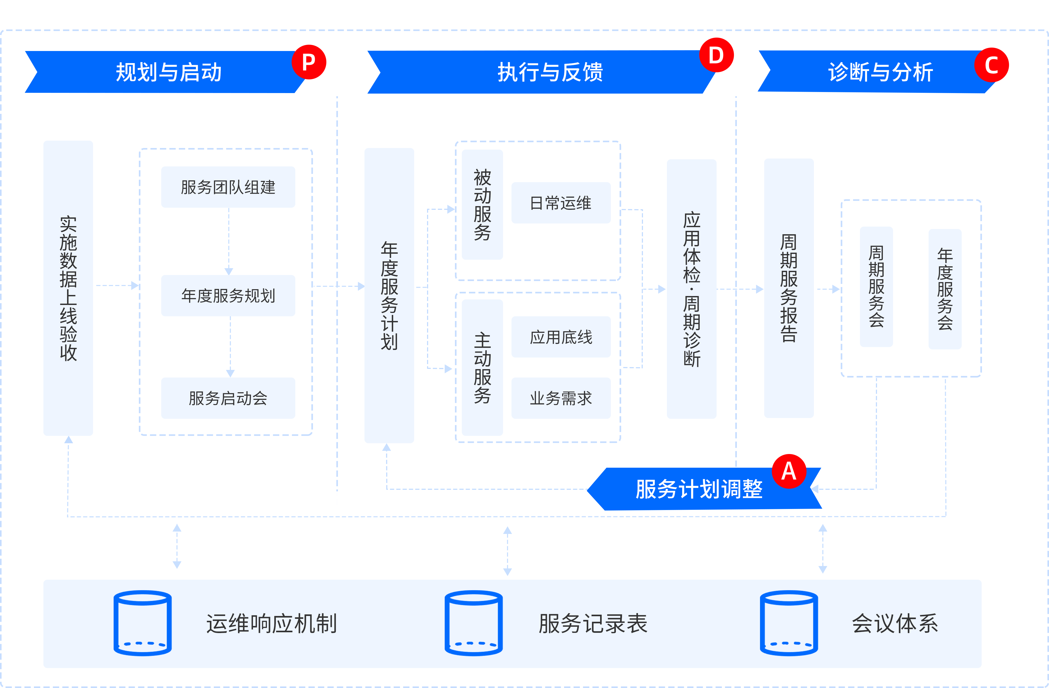 包含日常报事、数据调整、培训、现场辅助应用、权限流程调整5大服务细类,13项服务内容。
